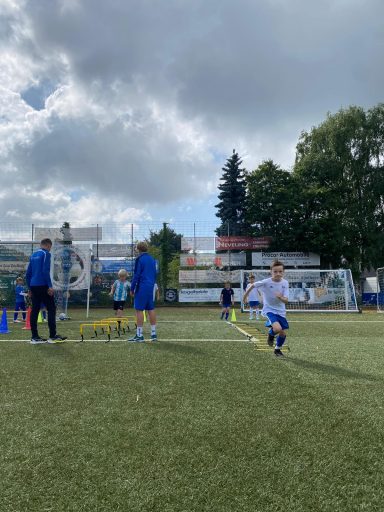Neben dem Training sorgten Highlights wie das Fußballabzeichen, der Fußball-Biathlon, ein Fußballquiz, Teamchallenges, ein Trainer-gegen-Spieler-Spiel und die traditionelle Abschluss-WM für echte Camp-Erlebnisse. Neben dem Platz wurden die Kinder auch wieder rundum bestens versorgt – mit warmen Mahlzeiten, gesunden Pausen, viel Apfelschorle und der ein oder anderen kleinen Überraschung. Am Ende der Woche ging jeder Teilnehmer mit eigenem Camp-Tshirt, Urkunde, Fußballabzeichen, eigenem Ball und vorallem ganz vielen neuen, tollen Erfahrungen nach Hause.